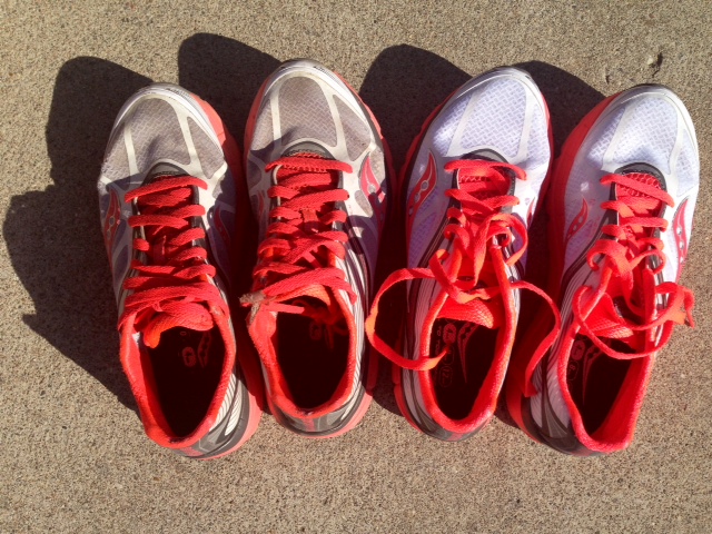 Mileage: First pair retired at ~700 miles after 2 races and marathon training. Second pair still going strong after ~100 miles and a marathon!