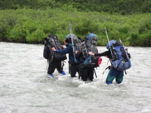 Finally we ended up at this gigantic river that we had to cross. First I took a break to put some moleskin on my foot arches while some of the others scouted the river. Eventually we were ready to cross it, and it was FREEZING! I couldn’t feel from my knees down at one point, when the water got up to my waist.