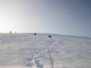 It took our team about an hour to cross the 2 mile wide glacier, and then we took a break before starting up the mountain. JP was the leader for the first half of the mountain, and it was funny because he kept zigzagging and we thought he looked lost. The next leader was Geoff, who did a good job getting us over some pretty big crevasses as well as up the mountain efficiently.