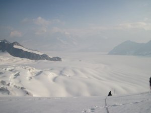 Being the climb leader, I had to get up at 3:30 am and check the day’s weather. We decided to do that so early because it has been so hot on glacier (80+F in the day… odd right?) and last night it was cloudy which holds in the heat and making the snow slushy and hard to climb or even snow-shoe on. So, I got up and the snow was still slushy, but we decided the earlier the better and left camp at 4am.