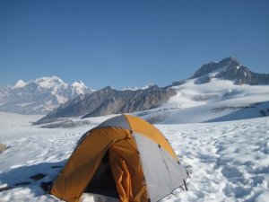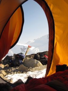 Suddenly we heard thunder and turned to see this black thunderstorm coming directly towards us. So we quickly packed everything up and got in our tents before it started dumping rain. There was some lightning, but we didn’t need to worry about it hitting the tents (we were told; I still whooped at the close ones!). It’s still raining now, but I’m warm and dry in the tent so I’m happy. I’m not looking forward to tomorrow’s 6-7 mile hike through slush, but today’s rest definitely has me up for it!