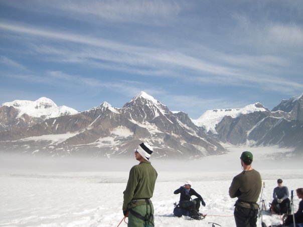 Well today was an exciting day from start to finish. First we woke up to almost no visibility, but since we have to get to the ration plane by the 13th, we decided to go anyway. So we got packed up, ate and right before we got into our rope teams the instructors called a meeting. With frozen feet we all stood around and learned how to navigate in a whiteout with both a GPS and just a compass. It took a while, but I thought it was interesting.