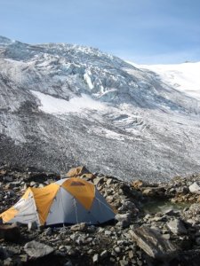 After hiking about six miles, we came to the medial murrain of the glacier and decided to camp on it. My group and one other group found flat places for tents on the rock, and the third tent and instructor tent camped on the glacier nearby. Our campsite is pretty comfy though, and I’ve really grown to enjoy rock camping. Everything stays dry while it’s still easy to build kitchens, seats, sleeping platforms and anchor the tent. After a beans and couscous dinner, I had my arctic explorer presentation [assignment I had been working on, mostly about flora and glaciology. We had to research these assignments by looking in books the instructors had and/or asking them lots of questions]. It went well!